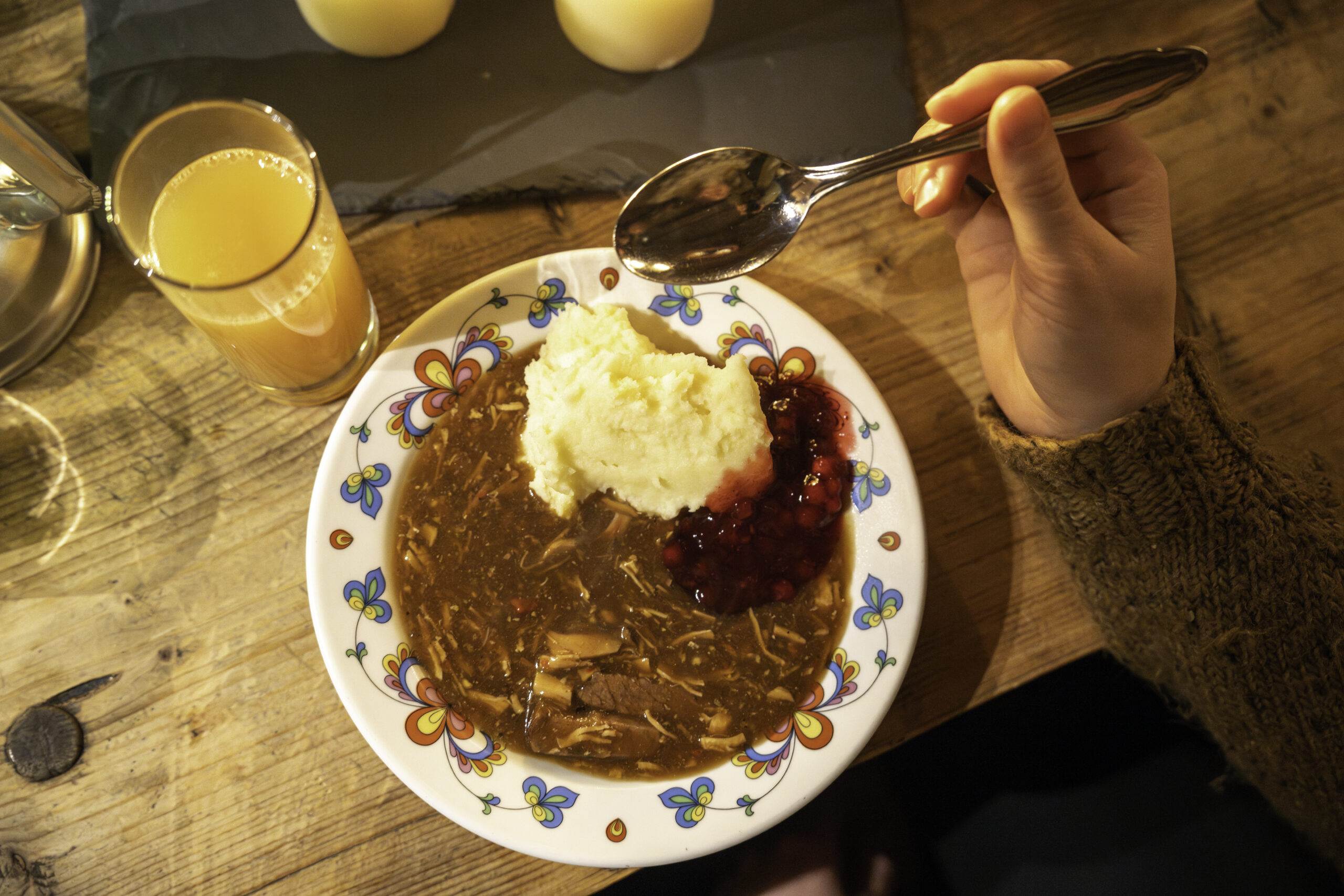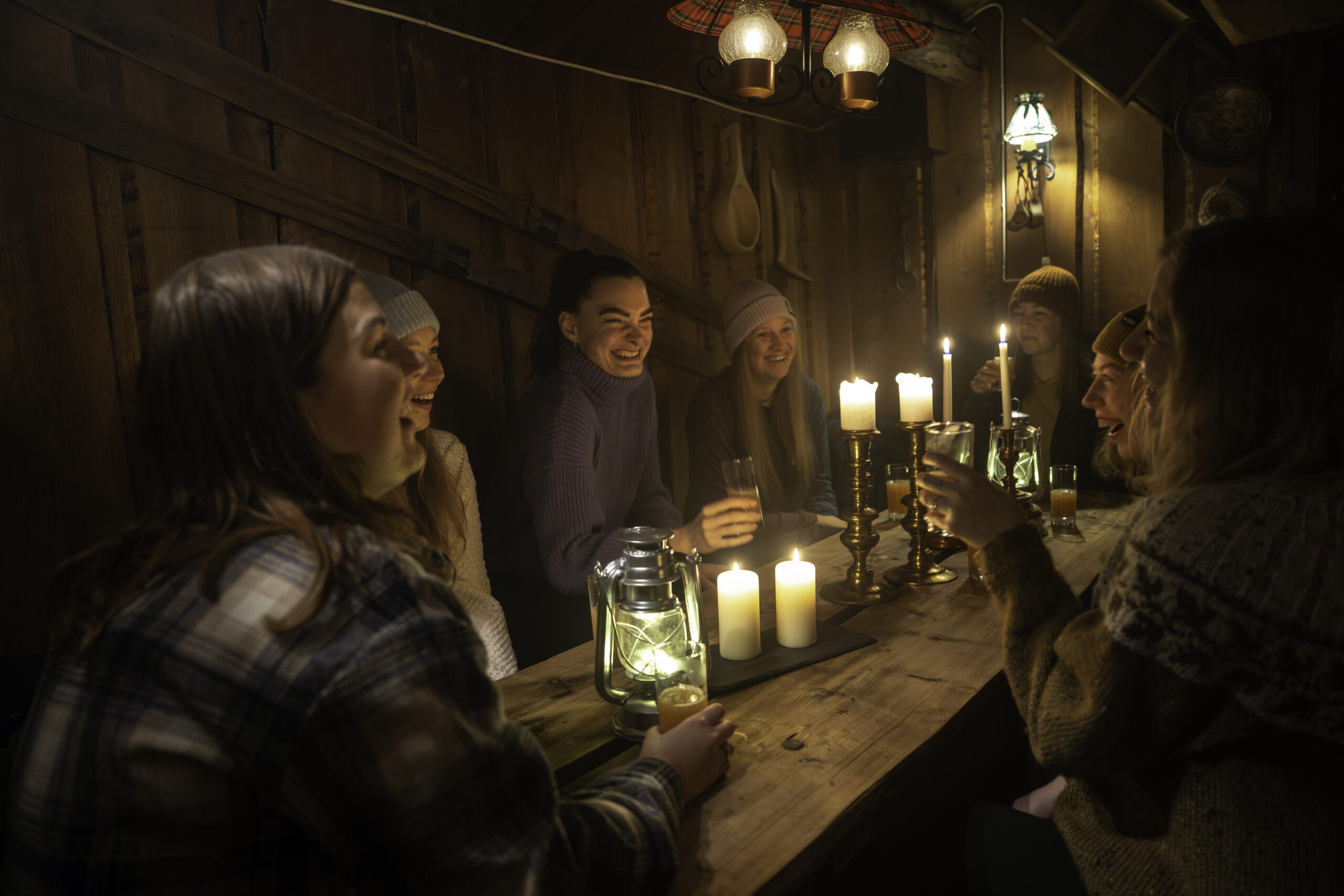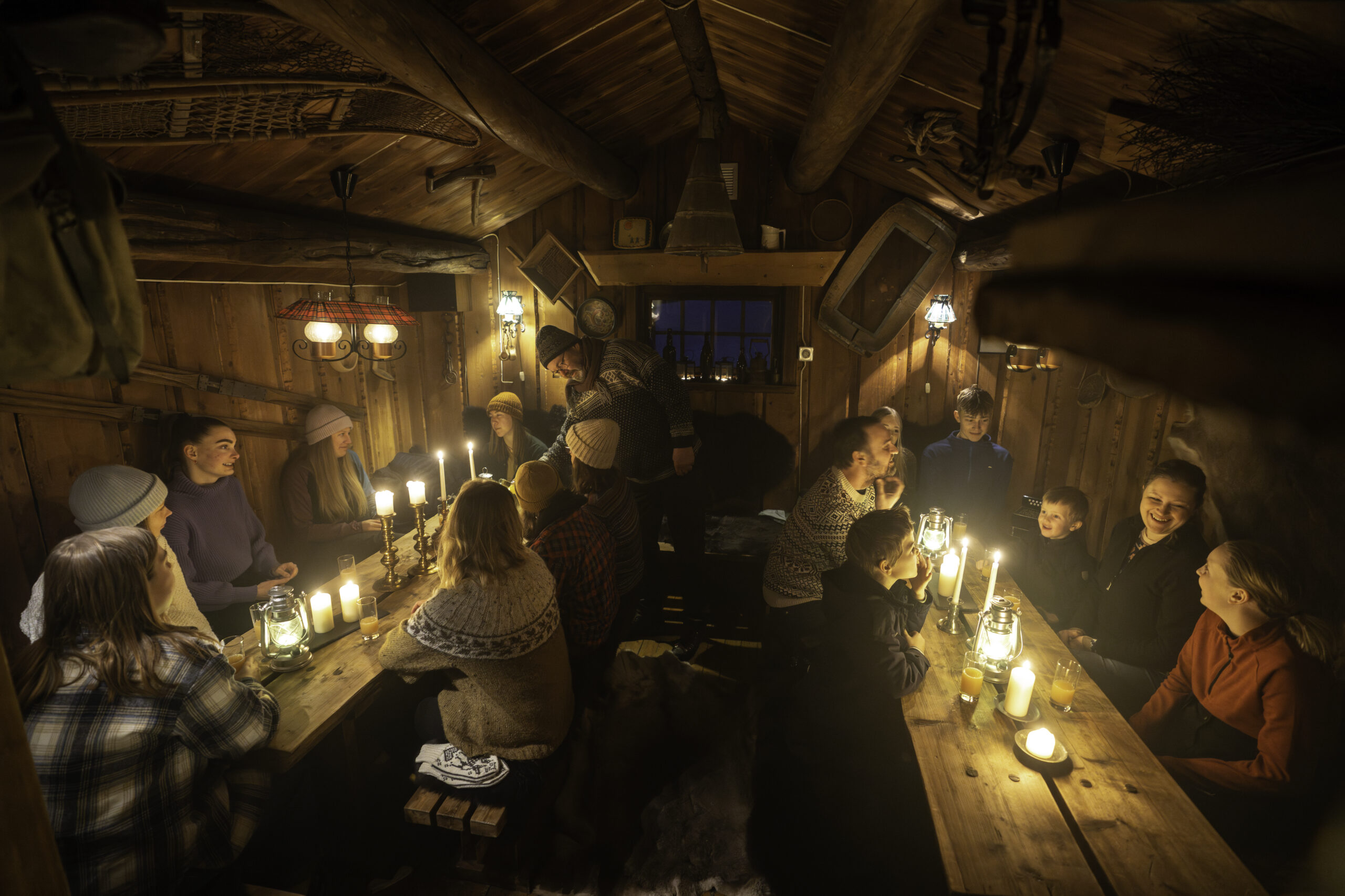 Det gamle stabburet ved Straand Hotel er innredet som en koselig fangsthytte vinterstid. Her serverer vi rykende varm viltgryte med forfriskninger til. Utenfor Trapper’s Cabin tenner vi gjerne opp i bålpanna og gir deg noe varmt i koppen for å bygge opp stemningen. Tilbudet egner seg både til firmaer, vennegrupper eller familier som vil ha litt ekstra vinterkos!