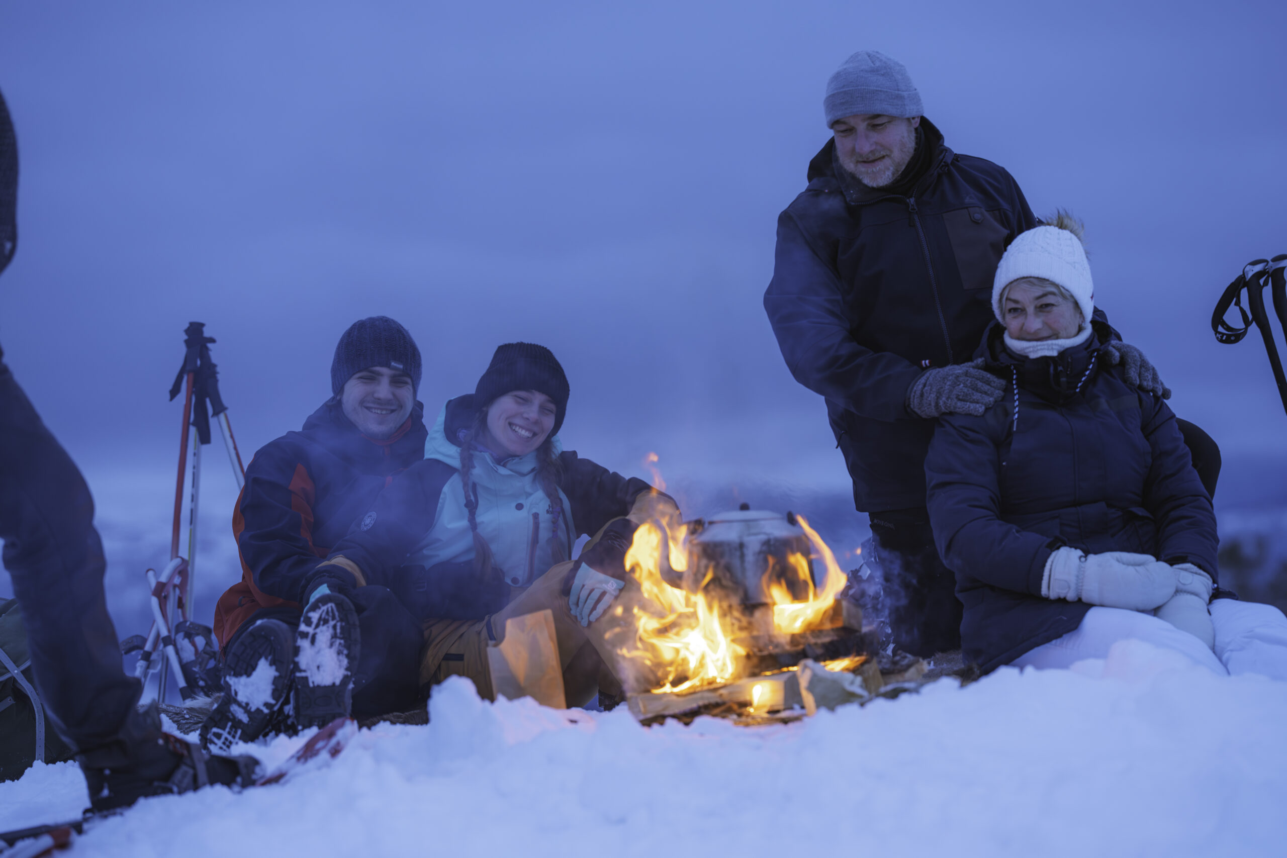 Vi går ut, tar på oss trugene og beveger oss opp i fjellsiden. Der fyrer vi opp bålet, koker kaffe på kjele på gamlemåten og nyter den rike smaken under åpen himmel. Omgitt av skog, fjell og frisk vinterluft får du en ekte og nær opplevelse for både kropp og sjel i vakre Vrådal.